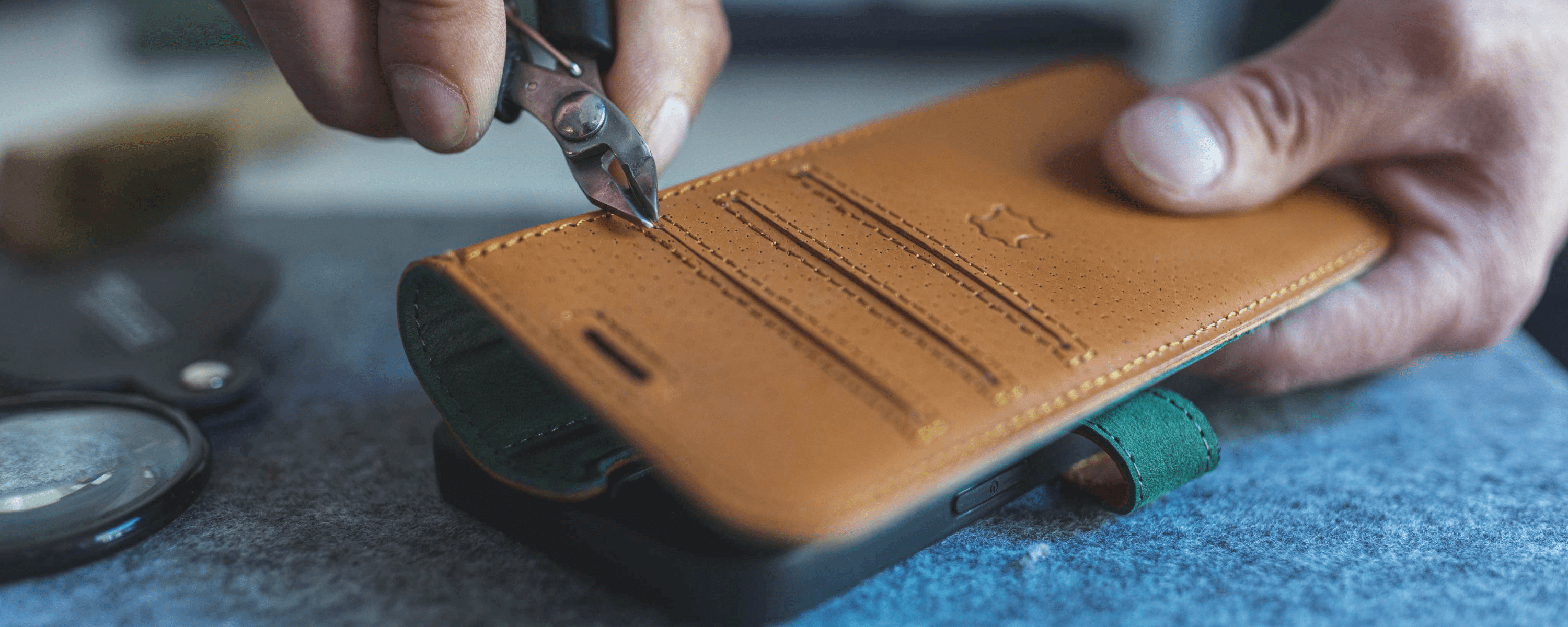 As all of our cases are handmade and hand-dyed using different cuts of natural leather, the finish of each of our cases will vary. Our Black, Navy, Bottle Green & Grey colours may have a softer, suede-like finish, whereas our Chestnut Brown, Teal & Plum colours tend to have a glossier, smoother finish.